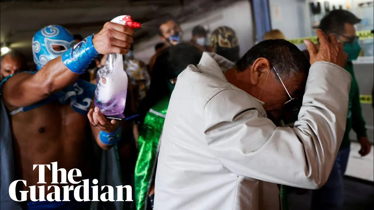 In Mexico City's Central de Abasto market, sellers and buyers are asked to wear masks and sanitize their hands regularly. Lucha libre wrestlers encourage those practices. https://www.youtube.com/watch...